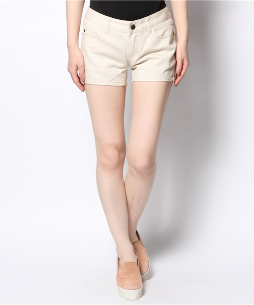 ベーシックな5ポケットチノショーツ。 フロント、バックポケット部分に軽いクラッシュ加工を施しユーズドライクな雰囲気に仕上げています。 使用するボタン、リベットにはブロンドロゴが刻印されます。 ミニマルなデザインで様々なトップスとのコーディネートを楽しんで頂けます。 夏らしいカラー展開と幅広いサイズ展開もも魅力です。 model:H160 B76 W60 H83 着用サイズ:25inch ホワイト model:H175 B81 W61 H88 着用サイズ:27inch