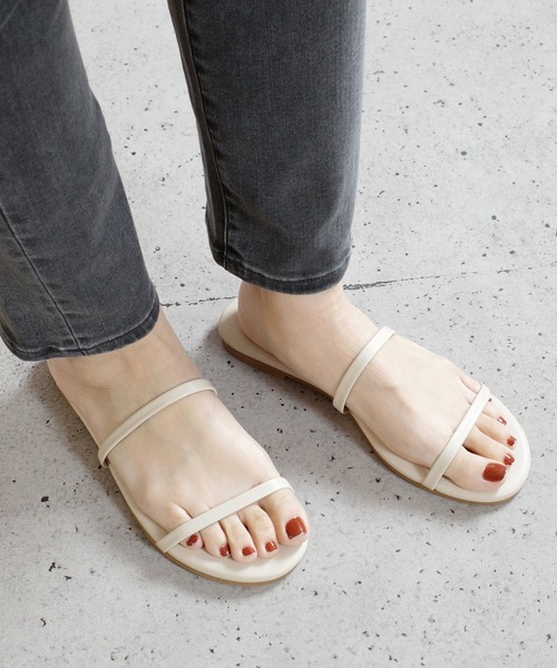 *…*…*リゾートにもタウンユースにも最適な、きれいめリラックスサンダル*…*…* リゾートにもデイリーにも履きやすい、リラックス感たっぷりの細ストラップサンダル。 ヌーディーなシンプルさで抜け感のある大人なスタイルが完成します。 華奢なダブルストラップが、カジュアルすぎず大人っぽく履けます。 やわらかくフラットなソールで歩きやすく、長時間履いていてもとにかくラクチン! シンプルで飽きの来ないデザインとカラーで、夏にヘビロテ間違いなしのアイテムです。 同じシリーズのトングサンダルタイプ⇒「FX015」で検索! トングサンダルゴールドプレート付タイプ⇒「FX30219」で検索! 【スタッフ着用コメント】 ●普段サイズ22.5~23.0cm甲普通・足幅細め 素足で着用 S⇒ストラップに少しゆとりがあるので足が前に行ってかかと余りますが、そこまで気にならないです。 ●普段サイズ23.5cm甲普通・足幅普通 素足で着用 M⇒幅も長さもぴったりです。ただ、後ろストラップが若干くい込むので甲高の人はきつく感じるかもしれません。 L⇒Mより余裕もって履けます。ゆったり履きたい人はLでもいいかもしれません。 ●普段サイズ24.0~24.5cm甲高め・足幅広め 素足で着用 L⇒長さはちょうどよくぴったりです。甲のストラップが少し食い込みますが履くうち馴染んできたらちょうどよくはけそうです。ぴったりで履くならこのサイズがよさそうです。 LL⇒長さが少し余っていますが甲のストラップは食い込まず履けました。少しゆとりもって履くならこのサイズがいいです。 ※かかと側のストラップが少し小さめなつくりになっております。幅広・甲高の方には少しきつく感じるかもしれません。サイズ選びの際はご注意ください。 ※袋入りでのお届けになります。 ※入荷時期によってインソールのロゴの大きさが2種類ございますが、お選びいただくことはできません。 ---------------------------------------------------------------------------- <価格改定のお知らせ> 2022/6/8より、原材料高騰のため価格改定をさせて頂きます。 ご了承下さいますよう、お願い申し上げます。 ----------------------------------------------------------------------------