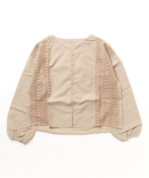 サイドにレースを施したブラウス。ゆったりとしたシルエットが気になる二の腕周りをカバーしてくれます。前面のボタンを全開にして羽織としても着用いただけます。