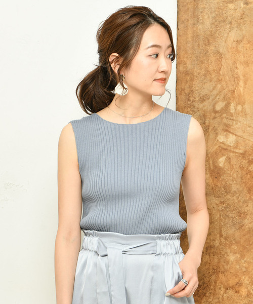 コンパクトなニットタンクはボディラインを華奢に見せてくれます。適度なサイズ感、長めの丈で夏のスタイリングに活躍します。リブが全体をスッキリ細く見せてくれます。落ち着いたカラー展開なのでカジュアル、フェミニンはもちろん通勤コーデにもぴったりです。