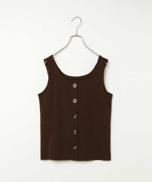 ボディラインをすっきりと見せてくれるワイドリブのタンクトップ。フロントに並んだボタンは、カーディガンやシャツなどを羽織った際にちょうど良いアクセントになってくれます。もちろんそのまま一枚ですっきり着ても◎[クリーニング]洗濯機洗い可(弱く)、ウェットクリーニング(W)