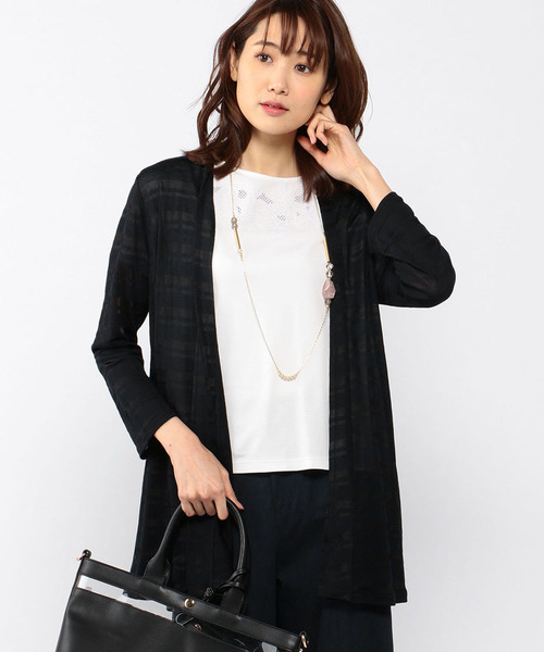 透け感のある仕上がりで清涼感たっぷりに 編みで表現したマルチボーダー柄がポイントのカーディガンです。 生地には透け感があり涼し気な表情に仕上がっています。 ボタンレスのためさらっと羽織ることが可能。 春夏シーズンにおすすめの軽やかなアイテムです。 モデル身長:165cm Mサイズ着用 商品詳細のところにある【ハートマーク】をクリックして、 お気に入り登録をしてくださいね! 嬉しいお知らせが届くようになりますよ!
