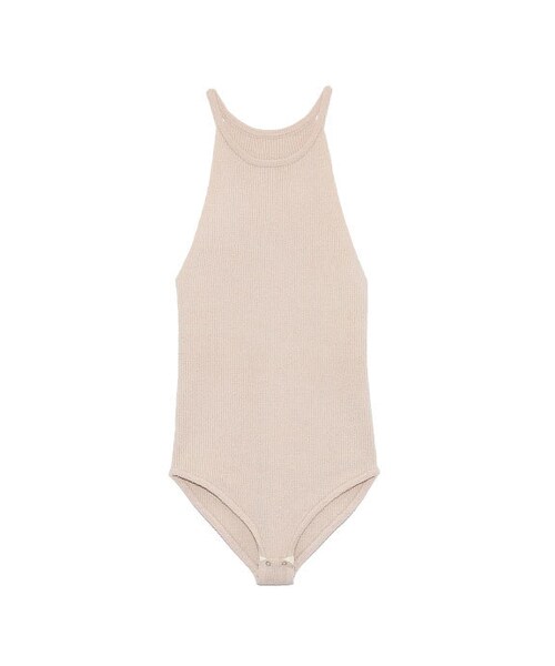 キャミソール風に着ることができるのが魅力のニットロンパース。