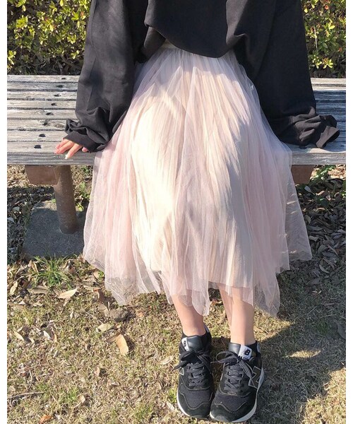 裾がランダムにカットされているチュールスカート。 ウエストゴムで履きやすく、ミディ丈で長過ぎないので使いやすいアイテムです。 ※裏地付き ※アイボリーは少しピンクがかった色味です
