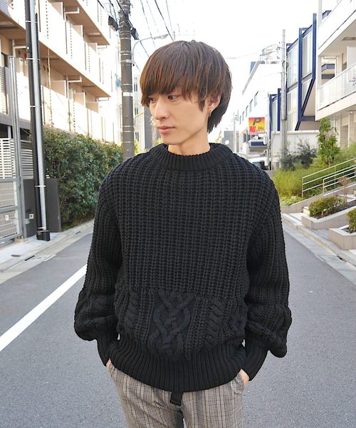 <SUPERTHANKS 2019 AUTUMN & WINTER COLLECTION>ケーブル編みを二種使った特徴的なローゲージクルーネックニット。 重厚感のある見た目からは考えられないほど軽い仕上げとなっています。 一枚で主役になれるニットを目指し製作されたのアイテムです。 温かみや、表情のあるニットをお探しの方に是非おすすめしたいアイテムです。 ベーシックカラーに加え、オレンジをご用意。着こなしのアクセントにうってつけのアイテムです。 【ZOZOTOWNでのお買い物をもっと楽しむために】 +商品のお気に入り登録+ お気に入りアイテムの♡をクリックすると、完売アイテムの再入荷通知や、ラスト1点の通知、セール通知を受け取ることができます。 お気に入りのサイズ・カラーまでお選びください。 +ショップ・ブランドのお気に入り登録+ 新商品の発売や再入荷、タイムセールやクーポン発行のお知らせなど、SUPERTHANKSBOXがお届けするお得な最新情報を受け取ることができます。 通知はアプリでも受け取ることができますので、ぜひアプリも通知設定をお願いいたします。