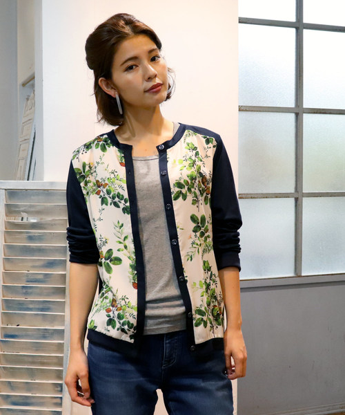 ■■■繊細なボタニカル調プリントカーで■■■前身頃はポリエステルxレーヨン生地の透け感のあるこの時期にぴったりな素材を使用。後身頃は通気性のよいポリエステル生地を使用しています。前面の鮮やかな色使いが特徴的なボタニカル柄プリントがポイントで一枚で華やかな印象を演出してくれます。 前開きのシルバーで縁取った釦がさらにエレガントさを引き立ててくれます。ボタンをしめても、開けて羽織りとしても◎カラ―はオフホワイトかネイビー、ブラックの3色からお選びいただけます。※画像の商品はサンプルです。※実際の商品と仕様、加工、サイズが若干異なる場合がございます。※撮影画像は、光の当たり具合で色味が違って見える場合があります。お気に入り♥ にご登録いただきますと新作入荷☆セール開始☆などなど、いち早くお得な情報をお知らせ致します!