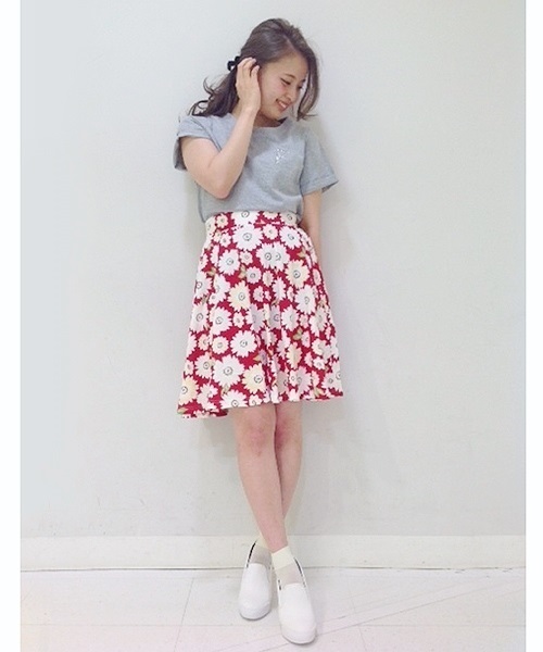 who’s who Chico(フーズフーチコ) 大きな花柄のプリントが印象的なカット素材を使用したスカート☆通気性も良くこれからの季節にマストなアイテムです♪落ち感がありスッキリとした着こなしになります!ベーシックなお色のTシャツと合わせてシンプルなスタイリングがオススメです☆