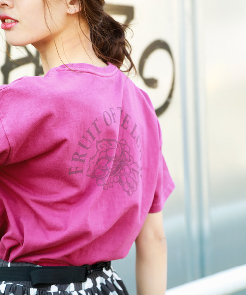 フルーツオブザルームとのコラボTシャツ。 ホワイトに加えて、夏ムードを盛り上げるイチゴ、キウイ、ブドウカラーの4色展開。 ピグメント加工を施し、ヴィンテージ感ある風合いに仕立てました。 前後に入ったプリントに、オリジナルプリントネームがポイント。 短めの着丈で、ボトムとのバランスがとりやすいデザインです。 【Fruit Of The Loom(フルーツオブザルーム)】 160年以上の歴史を持つ、アメリカのベーシックアパレル/アンダーウェアメーカー。 現在アメリカ・ケンタッキー州に本拠地を置き、 米国のアンダーウェア、プリント用Tシャツ市場ではTOPブランドとしての地位を確立しています。古くからアメリカ人のライフスタイルに溶け込み、この果実のロゴを知らないアメリカ人はいないと言われており、国内でもプリントTシャツのボディやアンダーウェアのブランドとして広く知れ渡っています。 ※屋外での撮影画像は光の加減で実際の商品より明るく見えたり、風合いが異なって見える場合がございます。商品の色味はスタジオ撮影の白背景の画像を参考にして下さい。