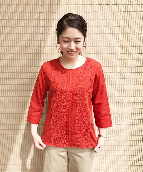 一枚で上品に華やぐデザインがうれしい素肌に触れても心地良いコットンリヨセル素材のブラウスです。前立てに同色の刺しゅう地を配して、上品な華やぎ感を加味しました。コーディネイトしやすく、一枚でサマになる、使い勝手抜群のデザインが魅力です。商品詳細のところにある【ハートマーク】をクリックして、お気に入り登録をしてくださいね!嬉しいお知らせが届くようになりますよ!