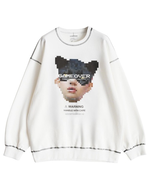 カラーステッチがアクセント。 適度なハリのある風合いとソフトな肌触りの裏毛素材。 ゆったりシルエットのプルオーバー。
