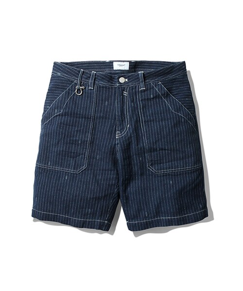 Espionage 2014 S/S Season 'Silent Majority For Peace'의 Jimmy Wabash Half Pants 입니다.워크 팬츠를 모티브로하여 반바지 형태로 변형을 시도하였으며 예전 노동자들에 의해 시작된Wabash 원단을 재현하여 인디고 염색된 원단에 도트와 Bomb 그래픽을 발염으로 표현하였습니다.Unseen 후크(내부 플라켓) 디테일을 여밈부분 내부에 차용하여 보다 나은 착용감을 느끼실 수 있으며신치백 디테일을 적용함으로써 워크팬츠의 오리지널 속성에 충실하게 제작되었습니다.