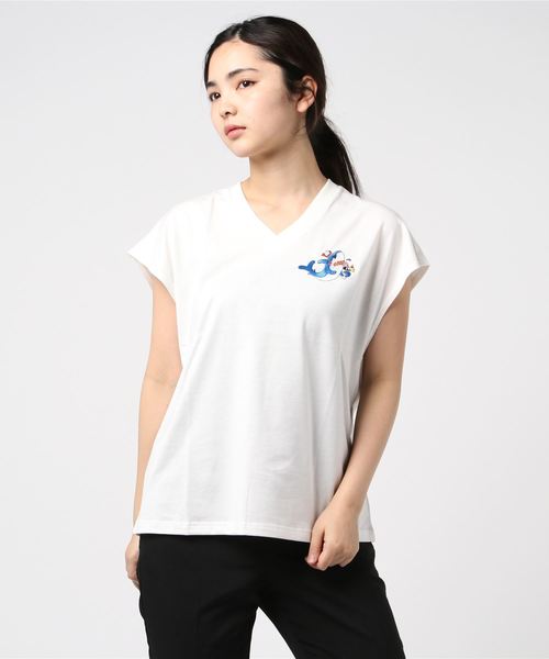 サメの刺繍がポイントのVネックT!!デニムやレギンスなどに合わせてスタイリングしてみてください★