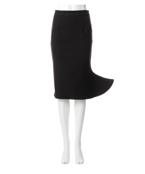 片方の裾が立体になっているタイトスカートです。伸縮性の高いデニム風カットソー生地を使用しているので、らくちんなフィット感です。