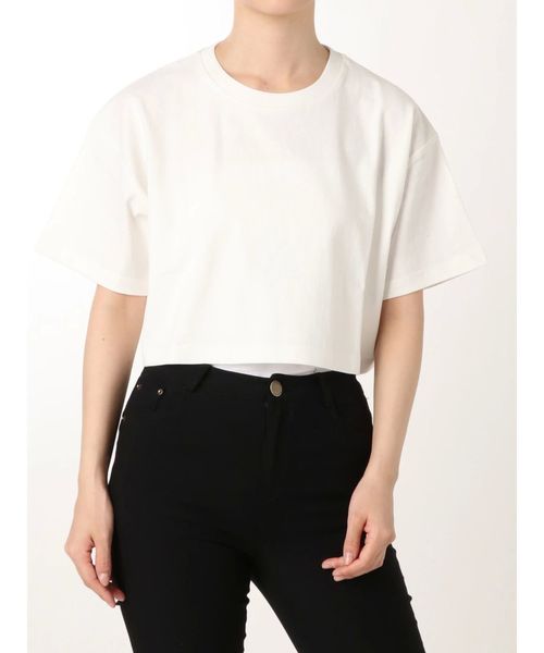 今季トレンドのショートTシャツ。どんなボトムでも合わせやすいシンプルなデザインです。厚手のしっかりとした天竺を使用しています。