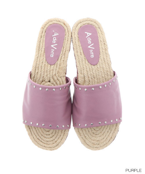 本革ブランド【A de Vivre(アドゥヴィーヴル)】 アッパー・底周りにスタッズを配置したカジュアルなジュートサンダル。 柔らかなレザーで足当たりが良いです。