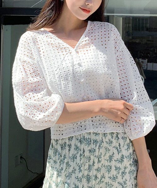 清楚な白のパンチングブラウス* デニムと合わせたり、ノースリワンピと重ねてもおしゃれ♪ ※WEARに記載してある金額と、DHOLIC通販サイトに記載してある金額にシステム都合上、稀に誤差が生じます。正しい金額はDHOLIC通販サイトに記載された金額です。