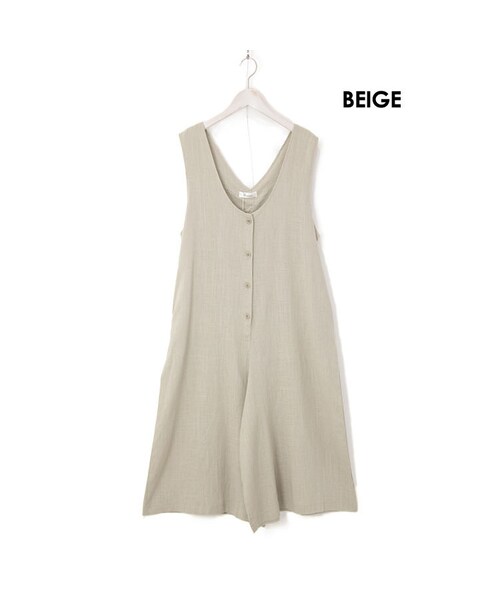 Sheson(シーズン)リネン混ワイドオールインワン ワイドシルエットのフロントボタンオールインワン。 ゆったりシルエットで 風通しがよく夏場も快適です。 広めのアームで動きやすい上、カラータンクを差し色使いしたりTシャツを合わせたり、 着こなしの幅も広がります。 足首が少し出るぐらいの着丈ですのでサンダルはもちろん、 ハイカットスニーカや編み上げサンダルなどシューズも選びません。 ベージュ、ブラウン、ブラックの3色展開です。 (モデル155cm) ■サイズF バスト 100cm・着丈115 cm・アームホール30cm・股下39cm ※商品によって若干異なる場合がございます。 ご了承ください。 ■素材 綿60% リネン40% ■カラー ベージュ・ブラウン・ブラック ■製造 中国 CHAINA