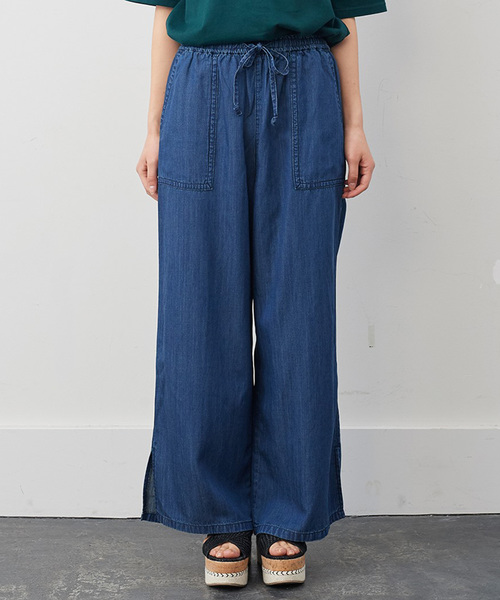 開放感のある夏仕様デニムしなやかさがあるリヨセル混のライトオンスデニムを、ワイドシルエットに仕立てました。ひんやりしたやわらかな素材感や、風が通る深めのすそスリット、ウエスト総ゴムなど、夏に快適にはける仕様です。大きめのカーゴポケットでメリハリ感をプラス。らくなはき心地がきれいめにキマるよう、ほどよい濃色で仕上げました。■FROM IEDITプランナー―生地の厚さ:薄手の軽いデニム素材です。―透け感:ありません。―伸縮性:ありません。―コメント:綿麻にテンセルを混紡した、さらりとやさしい肌心地の接触冷感デニムです。Sサイズなどの小さいサイズからXLなどぽっちゃりさんのための大きいサイズまで幅広いサイズ展開も魅力的。