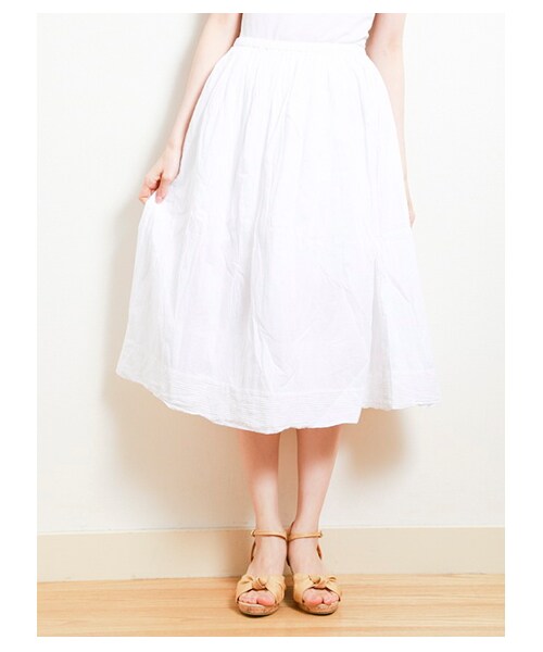 ★インド製品。クリンクル加工のロングスカートです。くしゅっとしたクリンクル加工が立体的な表面でデザイン効果を与えます。ベーシックな形に夏らしいカラー展開が魅力的です。カジュアルなトップスとフラットサンダルで合わせるのがオススメです。※裏地あり【モデル身長:約165cm/着用サイズ:Fサイズ】