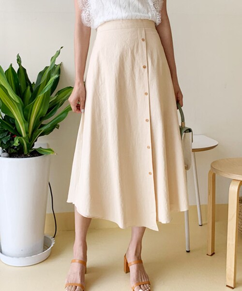 カジュアル上品なリネン混スカート。 フロントボタンがアクセントになり、ロング丈で大人っぽい一枚です。 ※WEARに記載してある金額と、DHOLIC通販サイトに記載してある金額にシステム都合上、稀に誤差が生じます。正しい金額はDHOLIC通販サイトに記載された金額です。