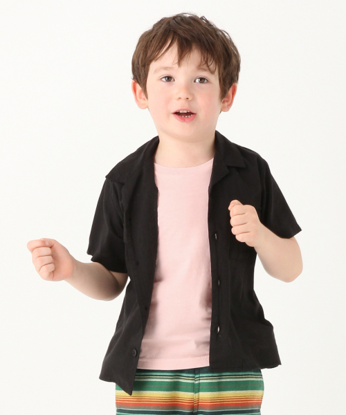 大人顔負けデザイン☆ 落ち感のあるレーヨン素材の開襟シャツ。 サファリ風の雰囲気やアウトポケットなど、トレンド感たっぷりの大人顔負けデザインがポイントです。 柔らかい着心地で、一枚着でも羽織としても使える便利なアイテムです!
