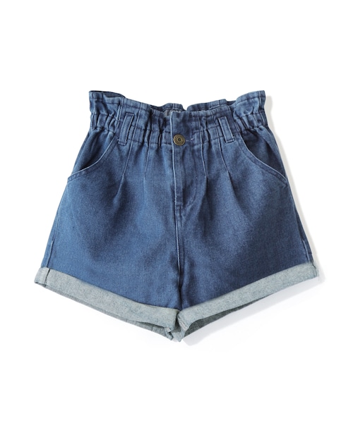 タックの効いた丸みのあるフォルムで、大人可愛く仕上げたデニムショートパンツ。 シンプルトップスと合わせてもグッとスタイリッシュに決まるハイウエストタイプ。 タックとギャザーでウエストにフリルをメイクし、CUTEなアクセントに。 くるっと折り返したヘムが着こなしにメリハリをプラス。 程よいフレア感で細見え効果も期待できちゃう万能アイテム。 ★加工の特性上、カラー・サイズが写真・サイズ表示と多少異なる場合があります。 ★ウエストゴム入りです。 ★ポケット付きです。 ★裾脇折り返し止めています。