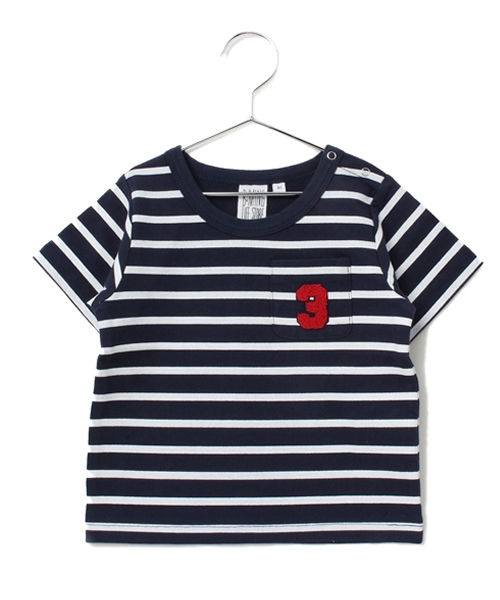 ポケット付きのボーダーTシャツ。ポケット部分に付けたパイル地のワッペンがキッズらしく可愛い仕上がりです。ナンバリングは今年のトレンド。コットン100%で着心地は柔らか、がんがん着回してください♪ ●80、90サイズのみ肩にスナップボタンが付いています。 店舗へお問い合わせの際は下記品番をお伝えください。 品番:94-04-0028-142