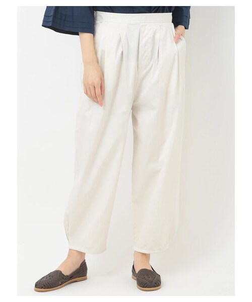 ウエストにタックをあしらいボリューム感をプラスし、裾に向かって丸みを帯びたフォルムがおしゃれなボンタンパンツ。 コットン100%のナチュラルな素材は、大人カジュアルなスタイリングにピッタリです。 シンプルなので合わせるトップスを選ばず、いつものパンツと変えるだけでコーデをブラッシュアップしてくれます。