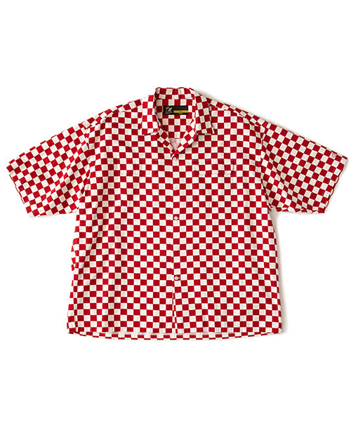 チェッカープリントが印象的なコットンツイル素材を使用した、通常よりも身幅・肩幅にゆとりをもたせたBIGシルエット半袖シャツ。ワークシャツをモチーフとした衿や胸ポケットのディテールに加え、各パーツを極力ステッチが表に出ない縫製仕様にすることでカジュアルな中にもクリーンな印象をバランスよく落とし込んだ仕上がり。袖のロゴ刺繍も程よいアクセントに。