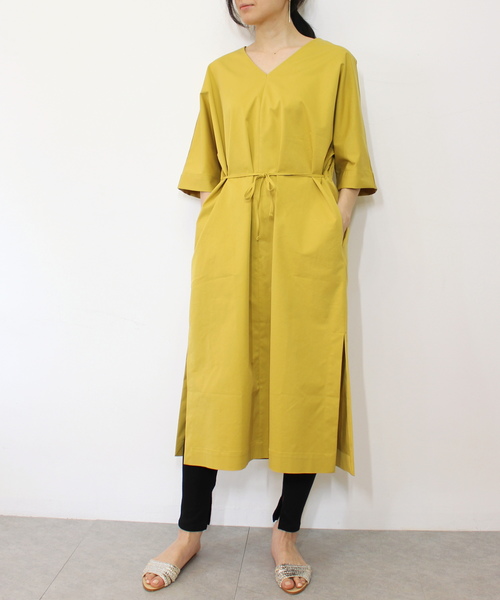 一枚でスタイリングが決まるエフォートレスワンピース。 ボディラインを拾わないデザインで、締め付け感もなくゆったりと着られる楽な着心地。 ウエストのベルトの絞り具合でシルエットの変化を楽しめる一枚。 きゅっと絞ってボディラインを強調した着こなしも◎ デコルテラインは綺麗に見せるVネックで顔周りをスッキリとした印象に。 バックデザインも深めのV開きで抜け感をプラスし、バックショットも抜かりない仕上がり。 サイドはスリットになっているので、レギンスやデニムと合わせたレイヤードスタイルもおすすめ。 ★もっとお買い物を楽しむために★ ★商品のお気に入り登録 お気に入り登録した商品は、セールの通知、ラスト1点の通知、完売カラーの再入荷通知などを受け取ることができます。 ★ブランドのお気に入り登録 新商品の発売や再入荷、タイムセールの通知など、ottilie取扱いブランドのお得な情報を受け取ることができます。