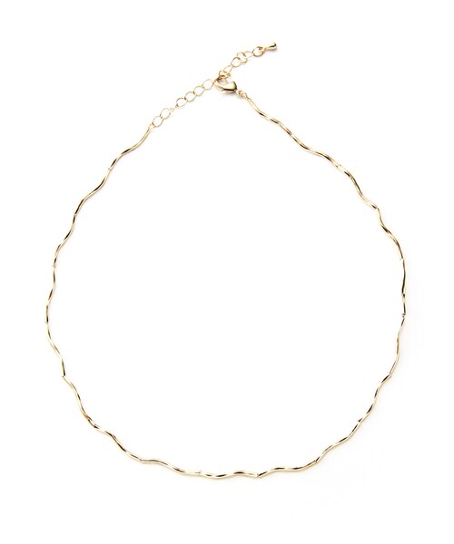 シェイプしたパーツを使用したデザインネックレス。 シンプルで華奢なデザインが、胸元を女性らしく魅せるアイテム。 ウェーブデザインなので、浮きが気になりにくく、着け心地も快適。 ★素材の特性上、カラーが、写真と多少異なる場合があります。 ★真鍮なので錆びにくい素材です。