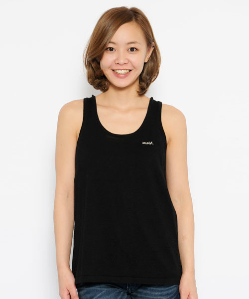 後ろ身頃がねじれたニット素材のタンクトップ★レイヤードを楽しんでコーディネートして!