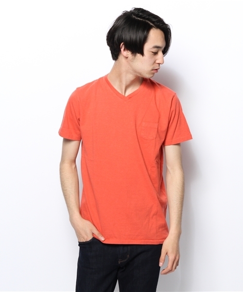 丸胴と呼ばれる筒状に編み上げられた生地は、Tシャツになった際、サイドは縫い目が無いのが特徴。 糸のテンションを熟年の職人の技により微妙に調節しながらゆっくりと編み立てている為、吊り編み機の特徴でもある空気を含んだ膨らみのある生地感と、程よくフィットする着心地に仕上げています。 Made in U.S.Aのラフな仕上がりが、古着のヴィンテージTシャツのような、味のある雰囲気を出しています。 胸部分には身生地とは異なるハイゲージの天竺生地を使用したミニポケットを付けています。 白以外は製品染めによってオリジナリティあるカラーリングに染め上げています。春先のインナーから真夏の1枚着まで、幅広く着用できるアイテムです。 品番 1021241168model:H185 B90 W71 H91 着用サイズ:42