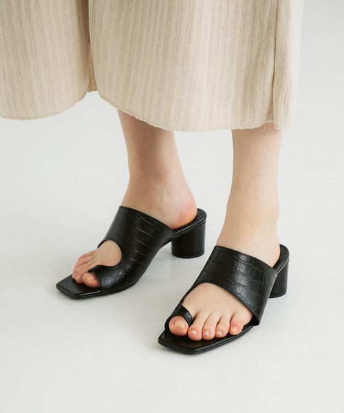 アシンメトリーなデザインがポイントのラウンドヒールサンダル。素材は牛革で足に馴染みが良く、歩き心地も◎ 注目の指ぬきデザインが今年らしいサンダルです。