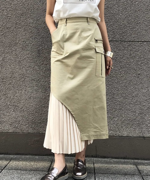 プリーツ×チノ素材の進化系ラップスカート ラップデザインとタイトめなシルエットが、女性らしくスッキリと見せてくれる1枚。 程良く丸みを帯びたシルエットが女性らしさを演出してくれます。 正面に設置した大きなポケットがエッジを効かせます。 季節を問わず着用して頂けるロングシーズンアイテム。 ※実際の色味は着用画像が近いお色味となります。