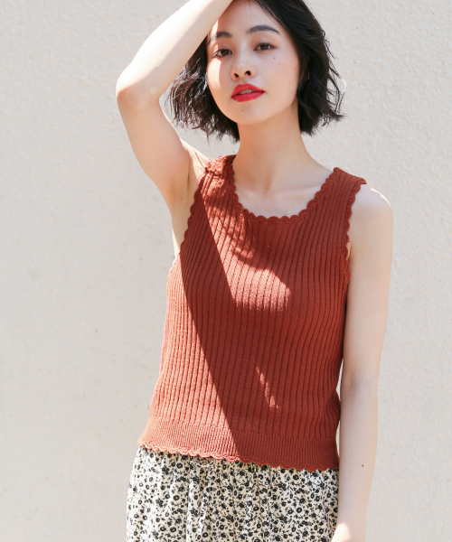 去年もご好評いただいたニットタンク去年入荷してすぐに完売してしまったニットタンクが今年も登場。鉤針編みの優しい印象のアイテムで、前後着用できるところがポイント。同素材でカーディガンも用意しているため、アンサンブルとしても着ていただけます。