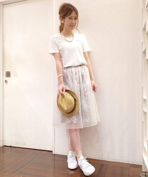 'HELLO!!ANOTHER EDITION' FROM RINA TANAKAフラワーレイヤースカート☆Another Edition×田中里奈さんのスペシャルコラボが実現しました!夏らしいトロピカルなフラワープリントにチュールを重ねて、きれいな透け感を演出したスカート。トレンドのスニーカーにも合わせやすい、少し長めの着丈もポイント。Tシャツとスニーカーをコーディネイトし、フェミニンなスカートもラフに着こなすのがオススメです。 店舗で実施しております、コラボ商品をお買い上げのお客様へノベルティーをお渡しさせていただくキャンペーンに関しましては、WEB店舗でお買い上げのお客様は対象外とさせていただきますので、あらかじめご了承下さい。また同キャンペーンに関しては店舗にて終了している場合がございます。 モデル:158cm その他1 詳細着用モデルH167 B87 W63 H91 着用サイズフリー ※田中里奈さん、スタッフ着用画像は色味が若干異なります。カラーは詳細画像をご確認ください。 ※着用、お取り扱いの際は商品についておりますアテンションタグ、洗濯ネームを必ずご確認ください。 店舗にお問い合わせの際は、全国のAnother Edition店舗まで 下記の品名/品番をお申し付け下さい。 品名:AE hello FLW LAYER SKⅡ 品番:56242991220 ※画像の商品はサンプルです。 実際の商品と仕様、加工、サイズ、素材が若干異なる場合がございます。