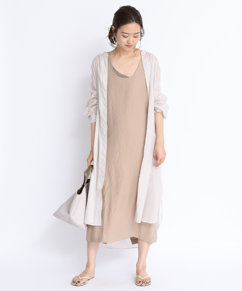 薄手で通気性のあるボイル生地を使用したシャツコートです。透け感が女性らしく、清涼感のあるデザイン。開け閉めしやすいファスナー仕様なのも嬉しいポイントです。ウエストの紐を結ぶ事でスタイルアップ効果も期待できます。お手持ちのベルトを合わせてアクセントにするのもおすすめ。
