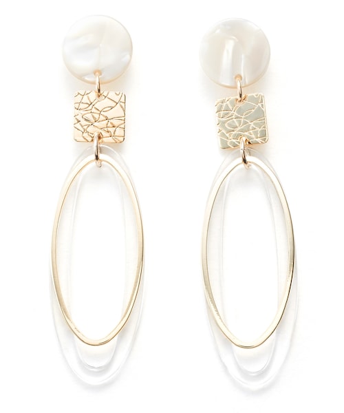 シェルデザインパーツxゴールドパーツが上品さを醸し出してくれるピアス。 細長いフープがスタイリッシュなアイテム。 クリア素材をミックスさせて、シーズンムードもプラス。 存在感のある大きさで、コーデのアクセントにぴったり。 ★素材の特性上、カラーが、写真と多少異なる場合があります。 ★金属アレルギーの原因となるニッケルをほぼ含まず、アレルギーの方にも安心なニッケルフリー加工でお肌に優しい素材です。