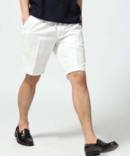 最高峰のフレンチリネンを採用したショーツ。[フレンチリネンの魅力]HAREでは上質なリネンとレーヨンの混合生地を採用しているので、さらりとした素材感が特徴的!またフレンチリネンはしなやかな質感なので長く着る程やわらかく肌に馴染み易い抜群の着心地です。吸水速乾性のある素材なので夏場でも快適な着心地を実現しました。フレンチリネンのオリジナルネームが付いた細部まで拘りが見受けられる特別感のある仕上がり。[HAREならではのディテール]イージーなイメージのあるリネンショーツですが、センタープレスを入れているのでスマートで綺麗目な印象に仕上げました。ウエストにはベルトループはもちろん、紐を通しているのでストレスフリーな着用感です。紐先には配色のステッチを入れており、紐を垂らしても遊びのきいたアクセントになります。綺麗目からカジュアルなスタイル、様々なコーディネートに落とし込む事が出来るシンプルなショーツは夏場にはマストなアイテム。