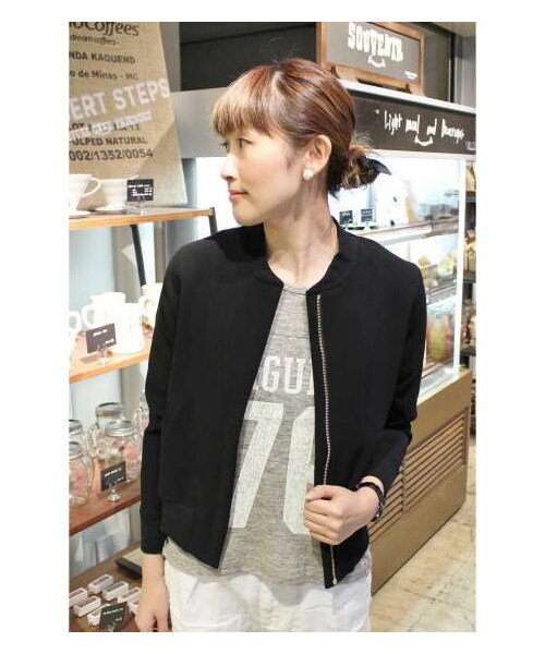 ◆◆SpickandSpan2014S/S◆◆コンパクトなサイズ感がキュートなブルゾンは、その滑らかな素材感でスタイリンングの幅が広がる一枚。パンツスタイルにはもちろん、今年はタイトスカートやフレアスカートに合わせた女性らしいスタイリングがおすすめ。体温調節が難しくなるこれからのシーズンにもサラッと羽織れて活躍しそうですね。モデルサイズ:身長:172cmバスト:80cmウェスト:60cmヒップ:85cm着用サイズ:フリー