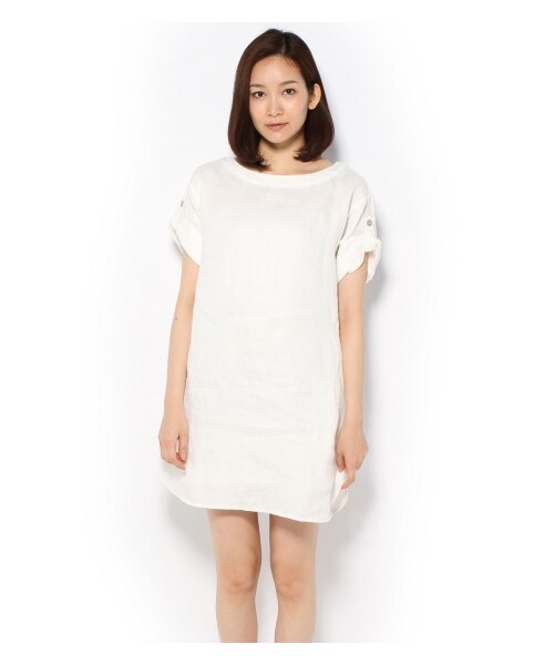 ☆2014S/S☆リネンのボートネックワンピースは夏のワードローブに加えたい1枚です。シンプルなボートネックのミニ丈はロングトップスとしても代用可能。袖のタブでロールアップしてシルエットがチェンジできるのもさりげないポイントです。通気性がよく、コーディネイトに合わせて選べる全5色。モデルサイズ:身長:172cmバスト:80cmウェスト:60cmヒップ:87cm着用サイズ:フリー