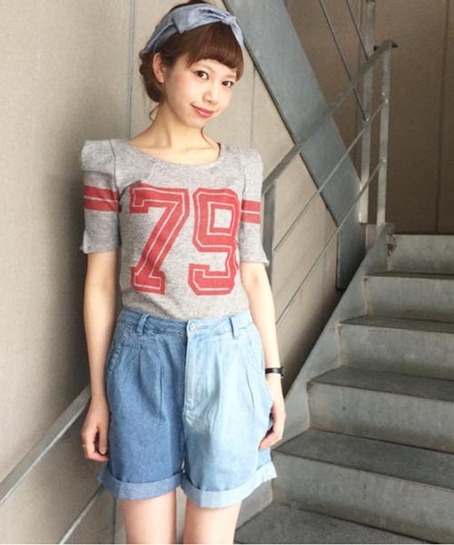 Kastane(カスタネ)左右で色が違うデニムのハーフパンツです☆裾の折り返しもポイント。カジュアルな印象なので、トップスはガーリーなものがオススメです♪
