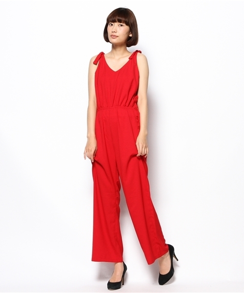 Kastane(カスタネ) リラックスできるゆったりシルエットの大人サロペット。ウエストのゴムで長さを調整できるので、小柄な方でも着て頂けます。肩のリボンはほどけるので、全体の長さも調整できます☆エスパドリーユなどのぺたんこシューズでも、ヒールのあるサンダルでもコーディネートできます♪