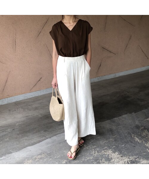 これからの季節デイリーに使いやすい麻パンツです。 さらりとした生地感で夏らしい抜け感アイテム! ウエストゴムでリラックスムード高まり、両ポケット付きなのも嬉しいポイント☆ トップスイン・アウトどちらでもおしゃれに着こなせ、涼しげなアイテムは1枚もっておくと便利なアイテムです。 ◆クリックポストにて代引きをお選び頂いた方は、390円プラスさせていただき、宅配便代引きにて発送させていただきますのでご了承下さい。 ◆カラー オートミール・カーキ ◆サイズ 着丈:94cm ウエスト:32.5cm(ゴム有) ヒップ:55.5cm 股上:30.5cm 股下:62cm わたり:36cm 裾幅:31cm ※多少の誤差は予めご了承ください。 ◆素材 レーヨン70% 麻30% (別布)綿 100% ※こちらの商品は海外縫製の為、多少歪み・縫製の甘さ(糸の出)などがある場合がございます。 予めご了承下さい。