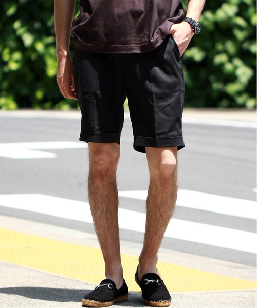 ストレッチ性と吸水速乾のCOOLMAX機能を持ったイージーショーツ。 形はスリムイージーテーパー型の膝上丈を採用しているので、細身ですっきりとしたデザイン。 イージー仕様ながらベルトループも配しているのでオン、オフと使い分けが可能な点も魅力です。 麻の風合いを出したポリ麻の平組織で、薄地で清涼感のあるので着心地も抜群です。