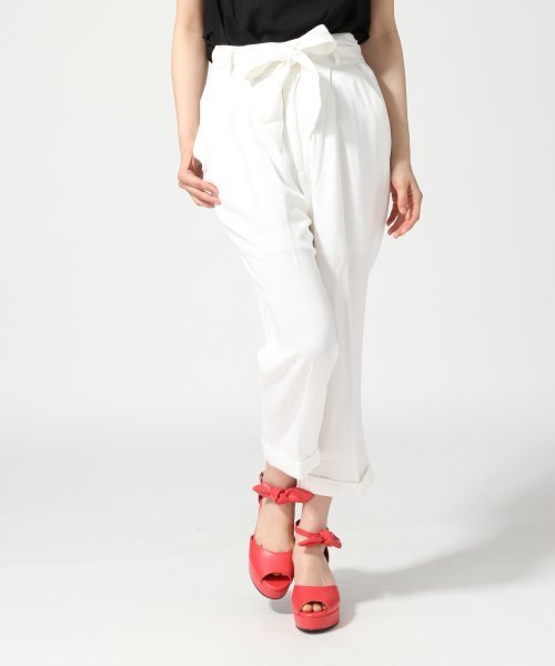 【ただいまWEB店舗限定セールアイテムさらに20%OFF! 】 期間9/4 (木)正午12:00~9/24(水)午前11:59までセール価格から更に20%OFFで販売! ※表示価格は更に20%OFFされた価格となっております。 ※上記の価格でお買い求めになる際は9/24(水)午前11:59までに決済までお済ませください。 (カートに入れていても9/24(水)午前11:59以降は元の価格に戻ります。) 【対象アイテムはコチラ】 ウエストのリボンがポイント☆ ウエストのリボンがかわいいタックパンツです。 レーヨン素材を使用しているので、さらっとしていて夏も快適に着ていただけます。 ゆるい履き心地ですがすっきりとしたシルエットで、美脚効果も♪ Tシャツを合わせてカジュアルに、ブラウスを合わせてフェミニンに!シンプルなデザインは合わせるお洋服を選びません☆ model:H165 B77 W59 H86 着用サイズ:SMALLmodelアイボリー H161 B80 W58 H88 着用サイズ:SMALL