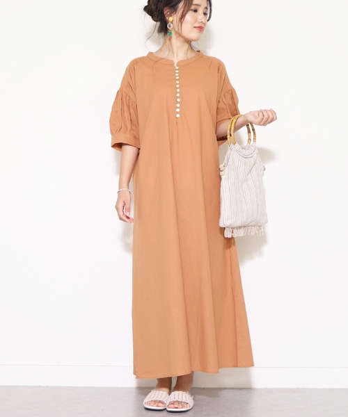 【ポイント】 1枚で大人かわいいビッグシルエットワンピース 胸元のシェルボタンがシンプルな中にこなれ感を演出。 肩周りの落ち感と生地をたっぷり使ったビッグシルエットでナチュラルな大人かわいいワンピース。 風合いのある薄手の涼しげな生地でこれからの季節に大活躍のスタッフおすすめワンピースです! ☆スタッフおすすめポイント☆ シルエットがとにかく可愛いこの夏必ず押さえておきたいワンピースです!! 【生地感】 さっぱりとした肌触りで涼しげな着心地。 ・裏地なし ※※紙タグにはFREEの表記がありますが、実際はMサイズとなります。 ※モデル着用写真は撮影環境により、多少実際のカラーと異なる場合がございます。予めご了承をお願いいたします。 ※サイズは現物をスタッフが平置き採寸したものになります。 ※生産時期により若干の色ブレやサイズの変動が生じる場合がございます。予めご了承くださいますようお願いいたします。