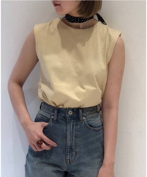 バックボタンが魅力のタンクトップ。前はシンプルなデザインですが、後ろのデザインが一癖ありシンプルながらもお洒落に見せてくれます。コンパクトなサイズ感がハイウエストのボトムスと相性◎