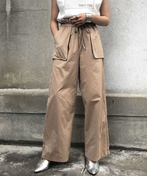 上品に着こなせるイージーベイカーパンツ細すぎない適度にゆとりのあるシルエットです。カジュアルに見えがちですが、ハリ感のある素材で上品に。裾サイドのスリットを見せると抜け感のある印象に。ハイウエストでスタイルアップを叶えます。・ウエスト紐でサイズ調節可能・裾両サイドにジップファスナーを設置